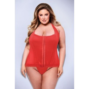 You will feel sexy in this seductively red, lace garter set by Baci! The cups feature playful lines ..