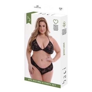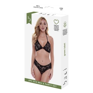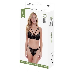 The Baci Two-piece ECO Strappy Bra and Panty Set in black combines seductive style with sustainable ..