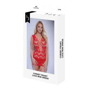 You’ll be all laced up and loving it in Baci’s newest mini dress! Available in crimson red and midni..