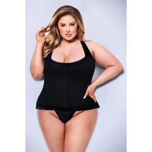 Bask in your own sexy skin with a vintage feel in this chic two-piece bustier set. Fashioned in shee..