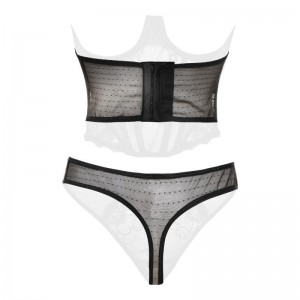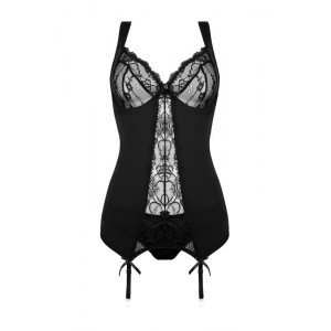 This sensual set stands out thanks to its transparent design and romantic lace details. The corset f..