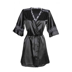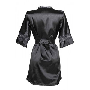 Feel sexy and confident in this beautiful satin short kimono! The kimono includes lace inserts for a..