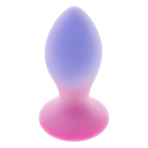 A classic tapered vibrating plug in a dual-layer silicone design. Colorful on the inside with a tran..