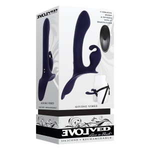 Give and receive intense pleasure with this strap-on triple-motor vibe that features a curved, chise..