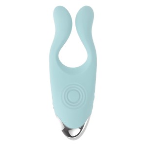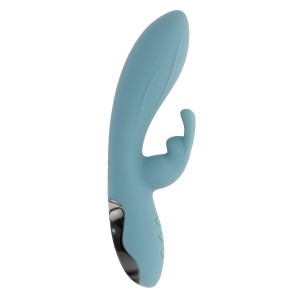 This powerful, sleek silicone rabbit vibe has a gently curved bulbous main shaft that ends in a tape..