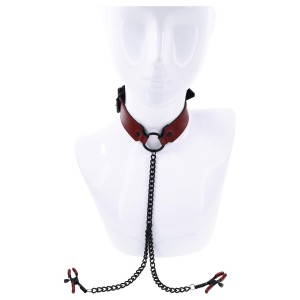 Indulge in the art of allure with the intoxicatingly deep reds of the Saffron Collar with Nipple Cla..