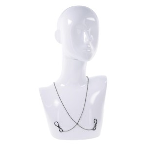 Divi regulējami krūšu klipši. Ķēdes garums: 37 cm. Pilns garums: 52 cm. Sudraba krāsa / melna / viol..