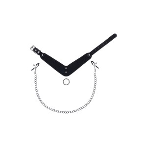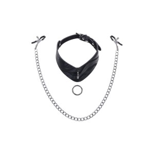 Elevate your scenes with the elegant dominance of the Velvet Noir Collar with Nipple Clamps. Crafted..