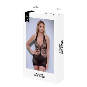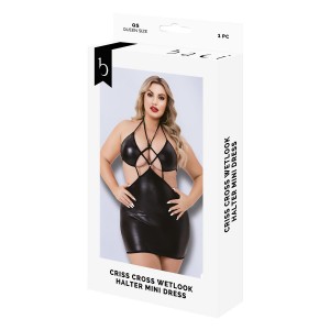 Unleash confidence and allure in Baci’s daring wetlook halter mini dress. Crafted from 100% polyeste..