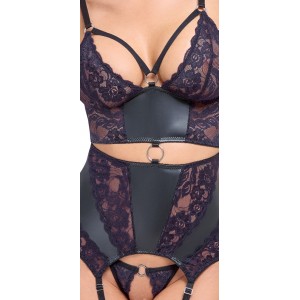 Beautiful material mix with sophisticated details!Basque and crotchless string in a set from Cottell..