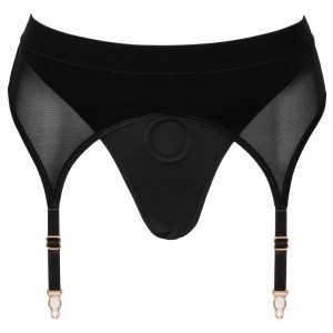 Seksīgs melns zeķturis, kas pašūts no elastīga auduma un mežģīņu ielaidumiem. Četras regulējamas len..