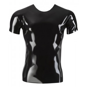 Melns unisex lateksa krekls. Klasisks taisns griezums ar īsām piedurknēm un apaļu izgriezumu ļaus VI..
