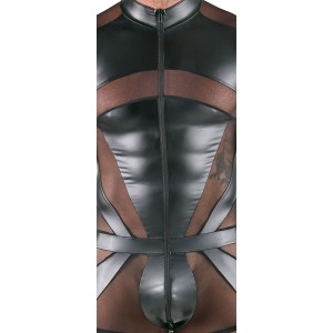 Masculine and inviting outfit!Tight-fitting but stretchy playsuit made out of shiny wetlook. With a ..
