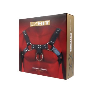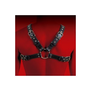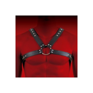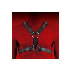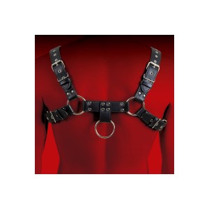 Melns ādas siksnu bodijs ar regulējamām siksnām, dekorativām kniedēm un locekļa gredzenu (diametrs 5..