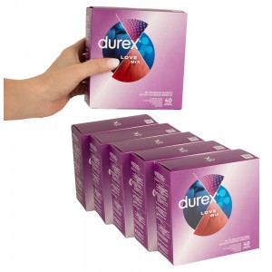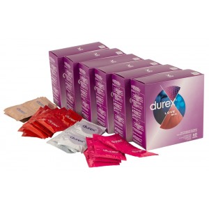 More diverse fun during safe sex! This economy pack Love Mix contains 40 Durex condoms in their well..