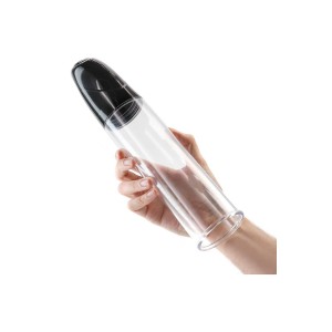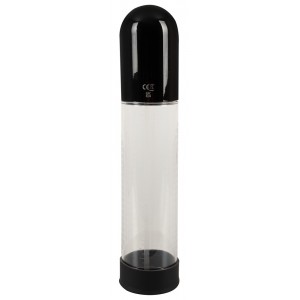 Caurspīdīgs dzimumlocekļa sūknis ar melnu uzmavu (elastīga Ø 2 cm) Aptuveni cilindrs 25 cm garš. Ma..