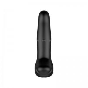Liels, tvirts, zīdaini gluda materiāla prostatas stimulators melnā krāsā ar vibrāciju un mehānismu, ..