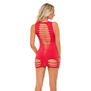 Sheer, stretchy form-fitting mini dress with side, back and cleavage cutouts. Click here for the Pin..