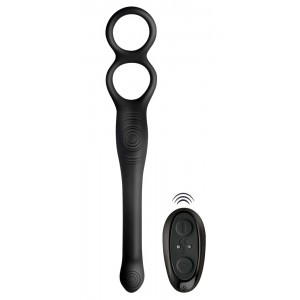 Divkāršs gredzens ar anālo vibratoru. Kopējais garums apm. 14 cm. Elastīgo gredzenu Ø 3,1 un 3,7 cm...